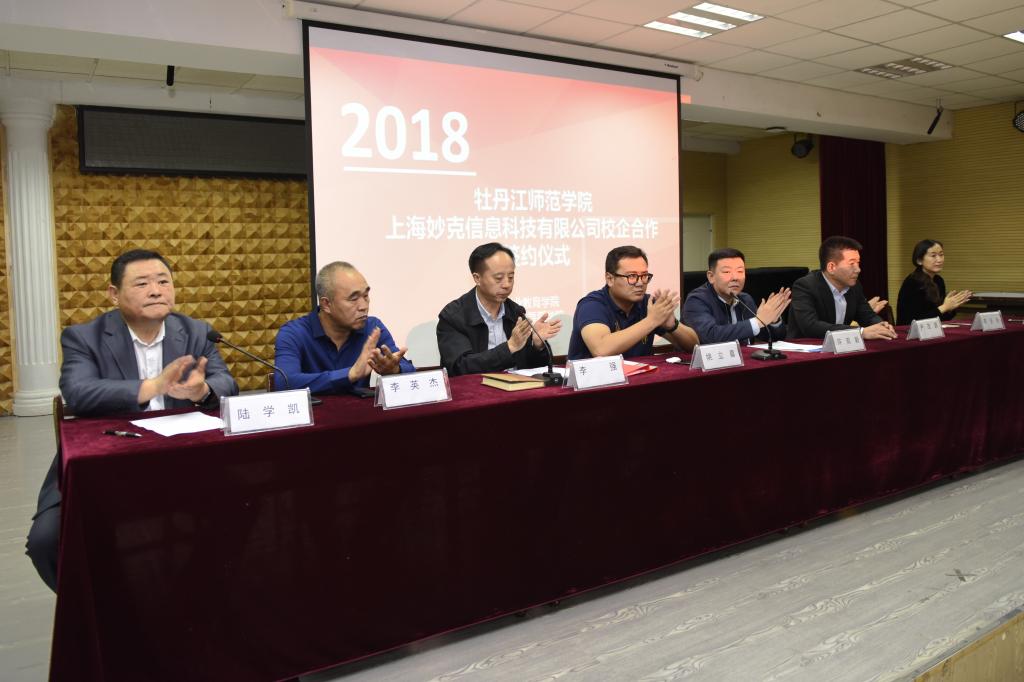 9月12日,音乐与舞蹈学院与上海妙克信息科技有限公司在我校第二音乐厅举行校企合作签约仪式。上海妙克信息科技有限公司董事长姚立嘉博士,教育部音乐舞蹈学科教学指导委员会委员、大连大学音乐学院院长李英杰教授,牡丹江师范学院创业教育学院院长李强,创业就业指导中心副主任吕晓芳以及音乐与舞蹈学院全体党政班子成员出席仪式;各系、部主任、全院团学干部及参训全体学生参加了签约仪式。仪式由音乐与舞蹈学院党委书记陆学凯主持。