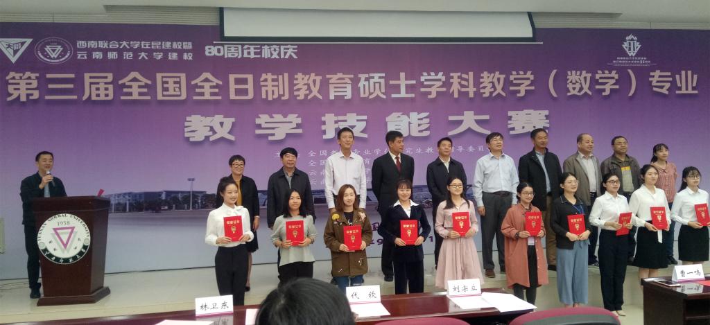 9月15日-17日,第三届全国全日制教育硕士学科教学(数学)专业教学技能大赛在云南师范大学举行。此次大赛由全国教育专业学位研究生教育指导委员会与全国数学教育研究会共同举办,来自北京师范大学、华东师范大学、东北师范大学、华南师范大学、南京师范大学、福建师范大学及牡丹江师范学院等全国72 所高校的197名选手参加了比赛。