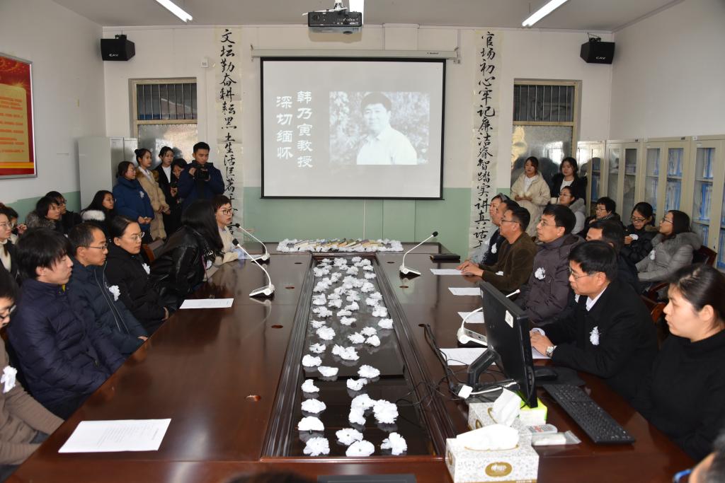 12月7日下午14时,文学院在文科楼316举行韩乃寅教授追思会。党委常委、副校长杨敬民,教务处处长周传胜,副处长关洪海,宣传统战部副部长关鑫;文学院院长孙英杰、党委书记王海志、副书记段星宇以及文学院教师、乃寅写作班已经毕业的同学和在校学生参加了追思会,共同缅怀韩乃寅教授。文学院大学生创作中心主任方秀娜老师主持追思会。