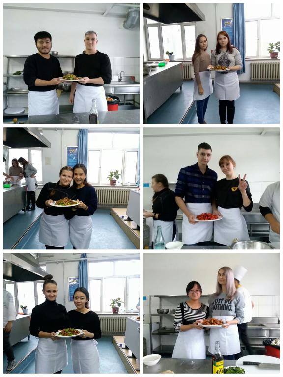此次外国留学生中国饮食文化鉴赏体验课程共设6节,历时一个半月。在牡丹江技师学院教师杨征东、蔡广程、苏德胜和车京云的配合和指导下,留学生们学习了东北特色菜肴和中国传统面食的制作方法。留学生们饶有兴趣地观看老师们的讲解,然后按照老师的演示步骤和制作要领,自己动手体验了做熘肉段、樱桃肉、锅包肉、韭菜盒子、糖酥饼、水饺等传统中国美食的乐趣。每节课程结束后,留学生们主动打扫教室卫生,将剩下的菜品打包带回。大家纷纷表示,回国后一定要给家人们做一桌中国的餐饭。