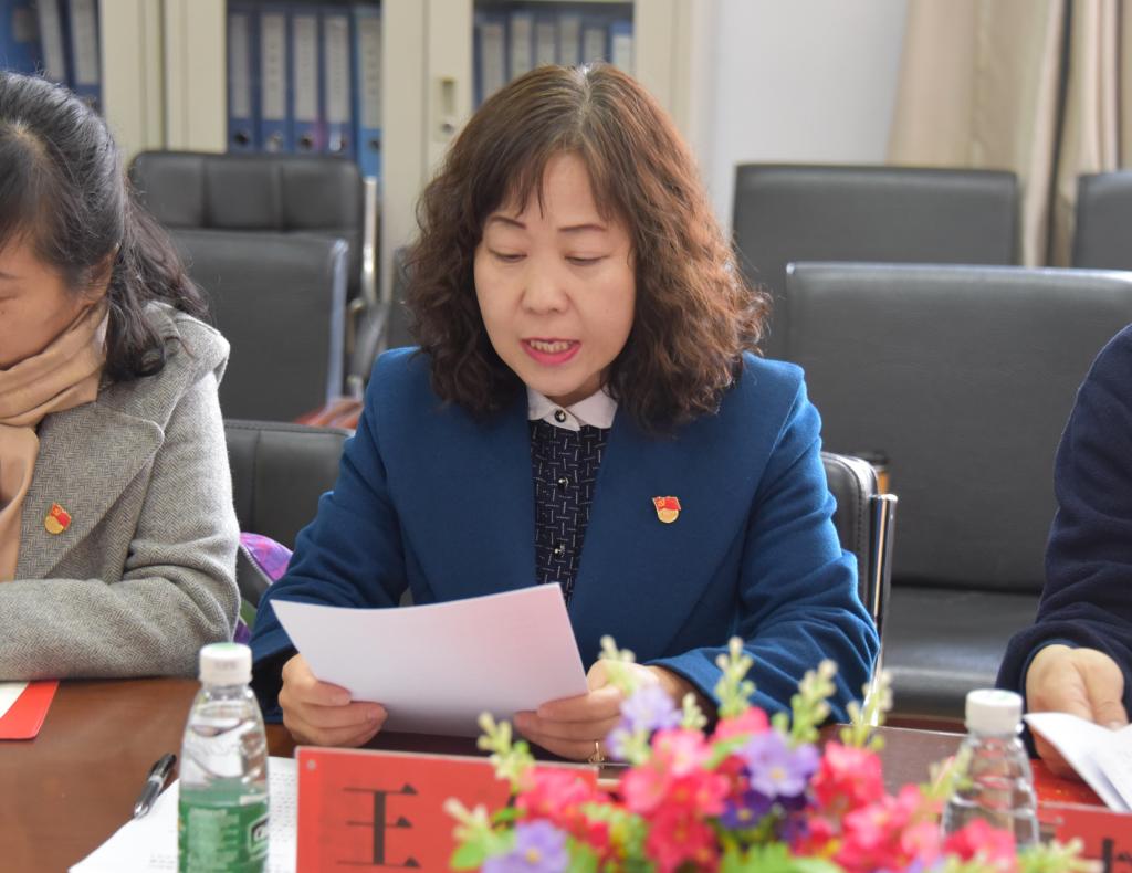 最后,党支部书记王华代表支部做表态发言。她表示,省市校各级组织部领导的出席,代表了上级党组织对基层支部的关注、关心和关爱,教师第一党支部所有成员将进一步加强学习,提高认识,把增强“四个意识”、树牢“四个自信”作为想问题、办事情、做工作的重要标志,始终保持共产党员的先进性,时刻严格要求自己,共同把支部建设成为真正的战斗堡垒。
