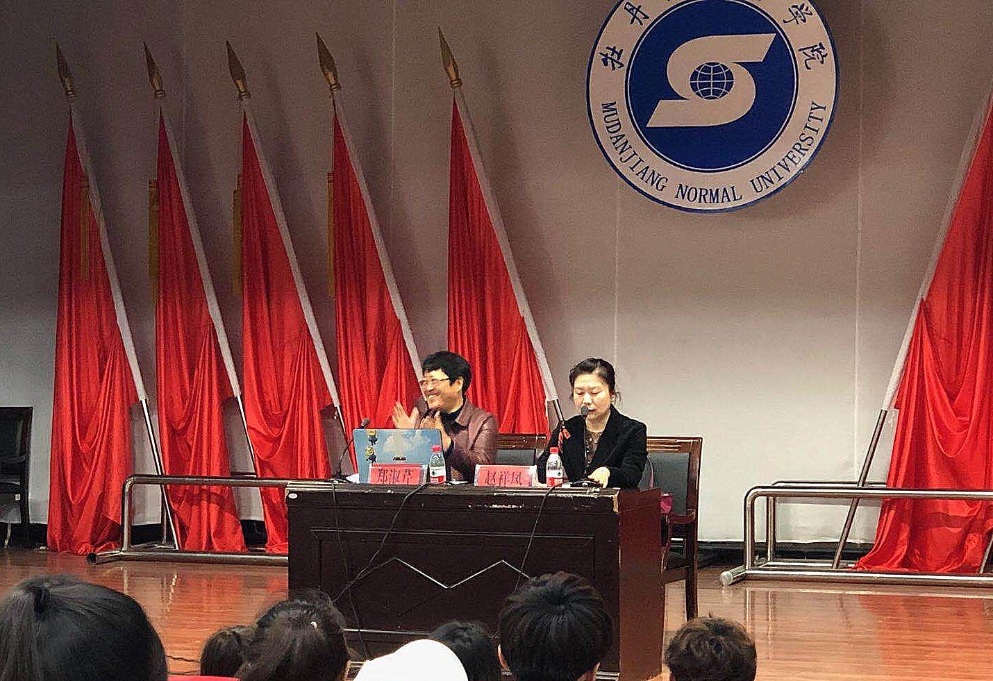 在校友讲座活动中,西方语言学院邀请我校英语系87届毕业生、宁安小新星英语学校创办人郑淑芹校长为同学们做创业经验交流分享。郑校长结合自身工作经历、创业体会以及现今英语教育大环境,呼吁当代大学生要不断学习与创新,为同学们创新创业点亮了明灯,指明了方向。