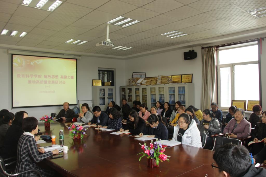 自学校启动解放思想推动高质量发展大讨论活动以来,教育科学学院党政高度重视,将其作为进一步查找学院发展短板、推动学院内涵建设的契机,起草制定了《教育科学学院开展解放思想推动高质量发展大讨论实施方案》,力求让每一名教师能够站在学院的角度,审视各项工作,查找发展阻力,为学院建设献计献策。