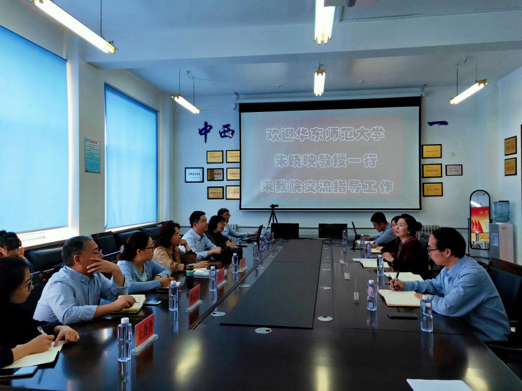 5月10日,华东师范大学外国语学院副院长、博士生导师朱晓映教授,大学英语教学部主任严文庆教授等一行7人来我校西方语言学院就大学英语教学改革进行经验交流,并为我校师生举行了讲座。
