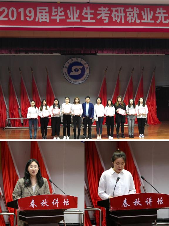 5月22日,应用英语学院邀请优秀校友付莹回校做“选调生备考及工作内容”专题报告,以自身成功经验为我院全体学生干部讲解选调生相关政策、指导符合报考条件的学生提前进行备考;当天下午,应用英语学院在春秋讲坛举办2019届毕业生考研就业先进事迹分享会暨表彰会,杨冠雄等七名优秀学生代表就自身考研和就业的心路历程为全体学生做精彩分享,学院为2019届考研就业先进个人颁发荣誉证书及奖品。
