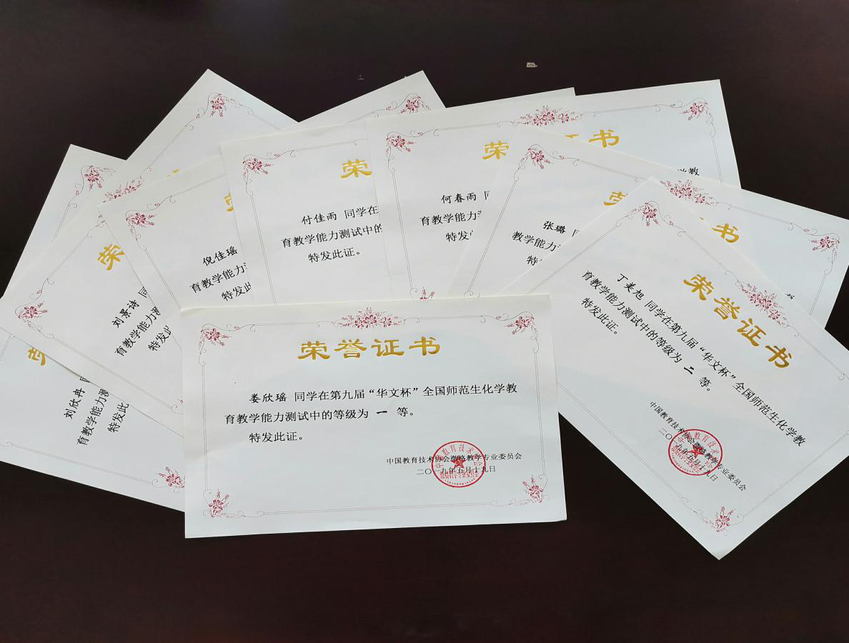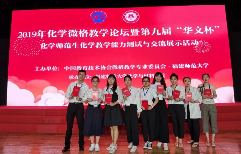 我校化学化工学院2017级教育硕士刘景诗、丁美旭、娄欣瑶,2015级本科生刘欣冉,2016级本科生何春雨、倪佳瑶、张璐、付佳雨共8名同学分获教学测试一等奖1项、二等奖5项、三等奖2项;教学设计二等奖7项、三等奖1项的好成绩。教育硕士刘忠慧、胡洋洋提交的论文分获优秀论文一等奖和三等奖;化学化工学院教师王慧、谭荣欣获指导教师一等奖。