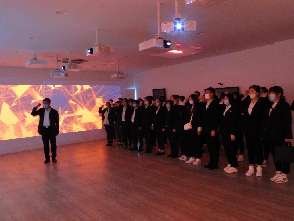 在沉浸式体验展厅,师生追寻先烈足迹,感怀波澜壮阔的历史光辉岁月,接受党的革命传统教育,更加坚定了全体师生党员不懈奋斗的决心。参观结束后,全体党员重温入党誓词,整齐响亮的誓言在心中回荡。