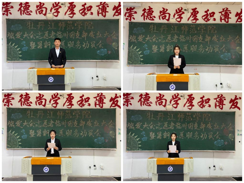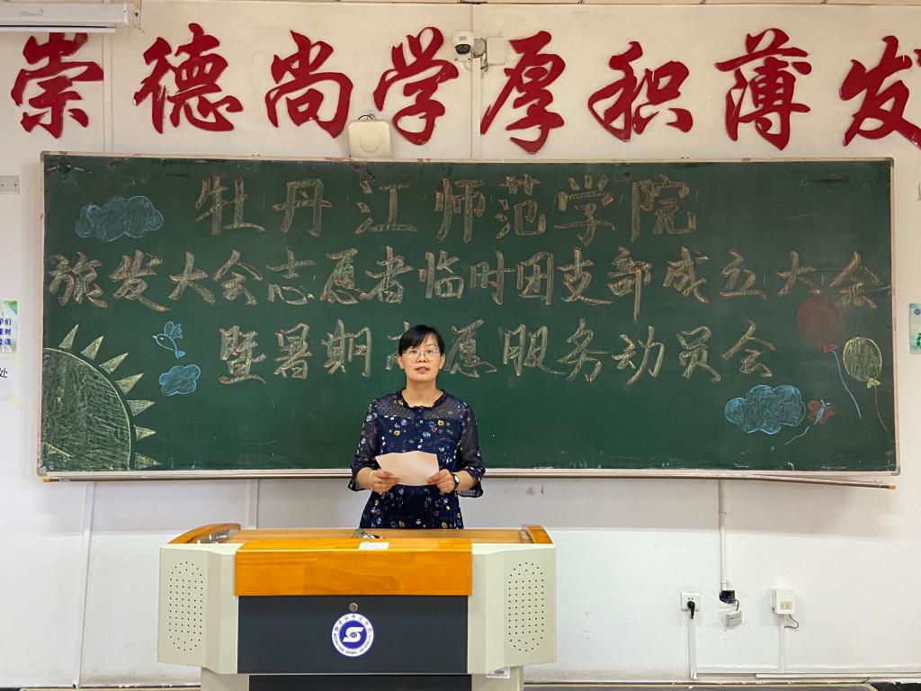 7月8日,牡丹江师范学院旅发大会志愿者临时团支部成立大会暨暑期志愿服务动员大会在综合楼125室举行。团委副书记关鑫、旅发大会青年志愿者及形象大使共130余人参加了本次会议。会议由团委宣传部部长赵薇主持。