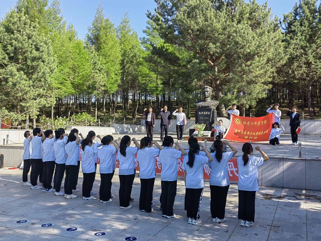 活动伊始,全体师生向东北抗联烈士孙成有纪念碑默哀,校团委宣传部部长赵薇代表全体师生向孙成有烈士纪念碑敬献鲜花。随后,团青代表饱含深情地诵读《颂英魂》,用声音缅怀先烈,以诵读致敬英雄。诵读结束后,在赵薇老师的领誓下,全体师生举起右拳,庄严宣誓,表达了对党的无限忠诚。
