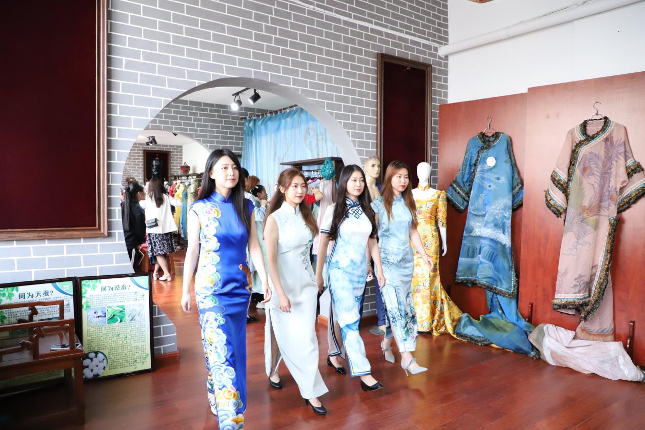 满族旗袍制作技艺传承人贾淑娟带领师生参观了满族旗袍制作展馆,介绍了满族旗袍的发展历史与制作工艺,满族旗袍近年来在制作技艺、审美风格以及展现地方文化元素等方面的创新发展,和文创产品研发情况,使师生们深刻感受到了满族旗袍所焕发的生机活力。