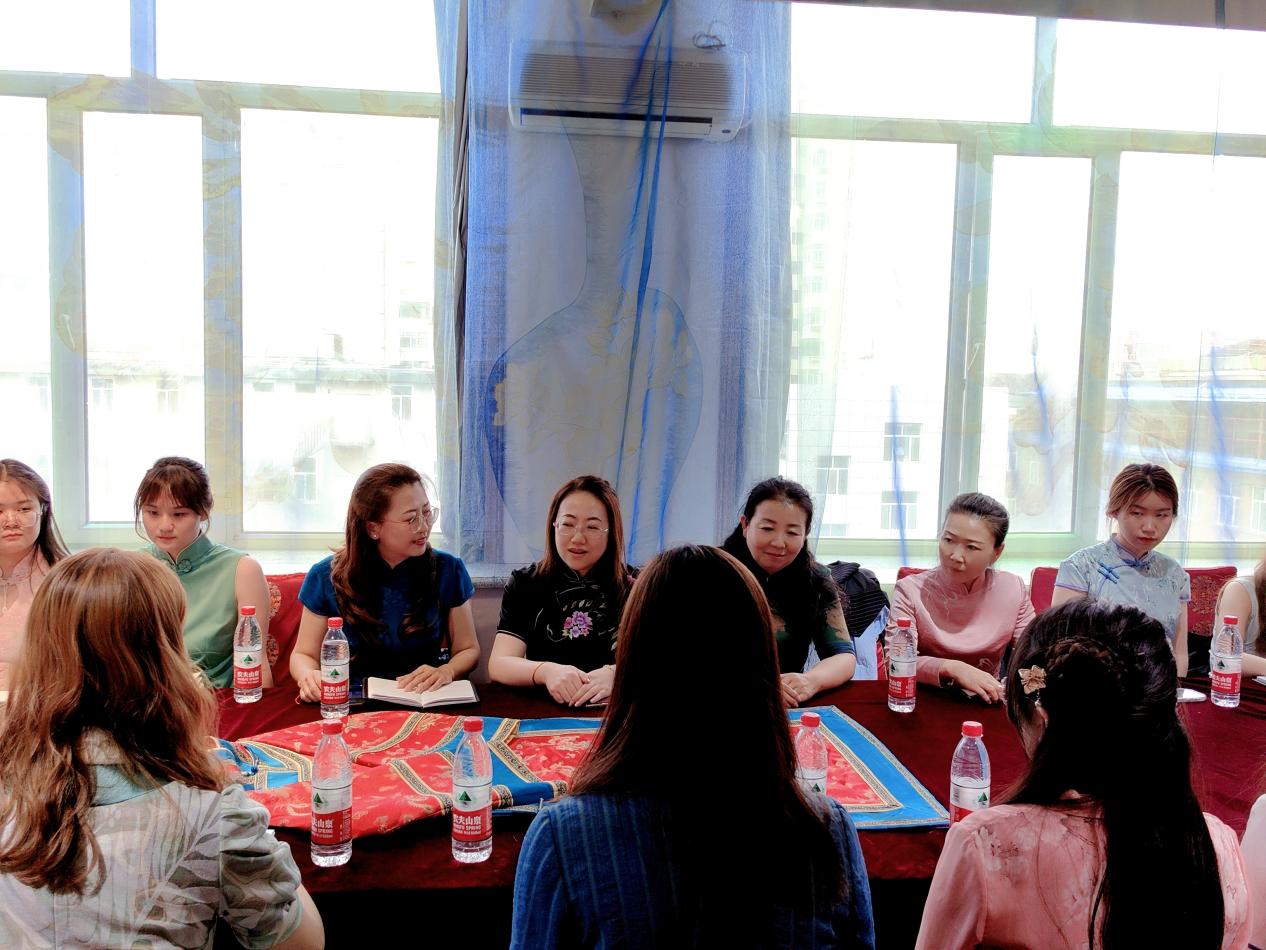 为更好地践行“加强非遗系统性保护、促进可持续性发展”“文物保护利用与文化自信自强”等主题活动,深入调研我校非遗传承人研培计划第8期“黑龙江非遗新媒体传播与运营”研修班教学效果,及时了解学员返岗工作情况与实际需求,6月9日下午,我校省乡村教师教育发展学院(继续教育学院)直属党支部书记王明莉,“非遗传承人研培计划”项目组宋娟教授、宋明华教授带领学生代表走进了满族旗袍制作展馆,开展主题学习与体验活动,对满族旗袍制作技艺传承人贾淑娟等研修学员进行了回访,并就满族旗袍的创新发展与新媒体运营策略、加强非物质文化遗产的系统性保护等展开了专题研讨。