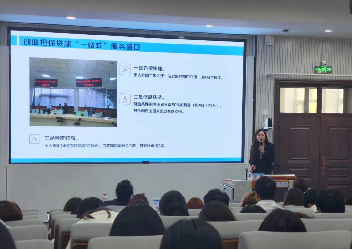 讲座中,胡科长从创业担保贷款政策和“种子资金”政策两个方面进行了详细解读,讲解了大学生创业相关政策、创业贷款申请材料、“种子资金”补贴标准、创业项目补贴申请条件以及大学生创业带动就业奖励激励等方面的内容,使同学们对创业相关政策有了更加深入的了解。