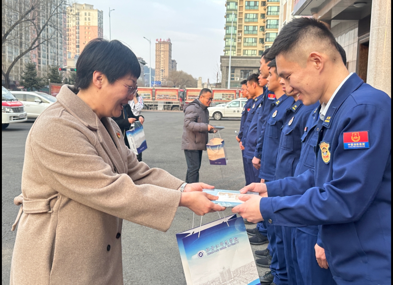 随后,数学科学学院党委书记宋妍、正处级组织员王海志、副院长祖培福向爱民区消防队领导班子赠送牡丹江师范学院纪念品。