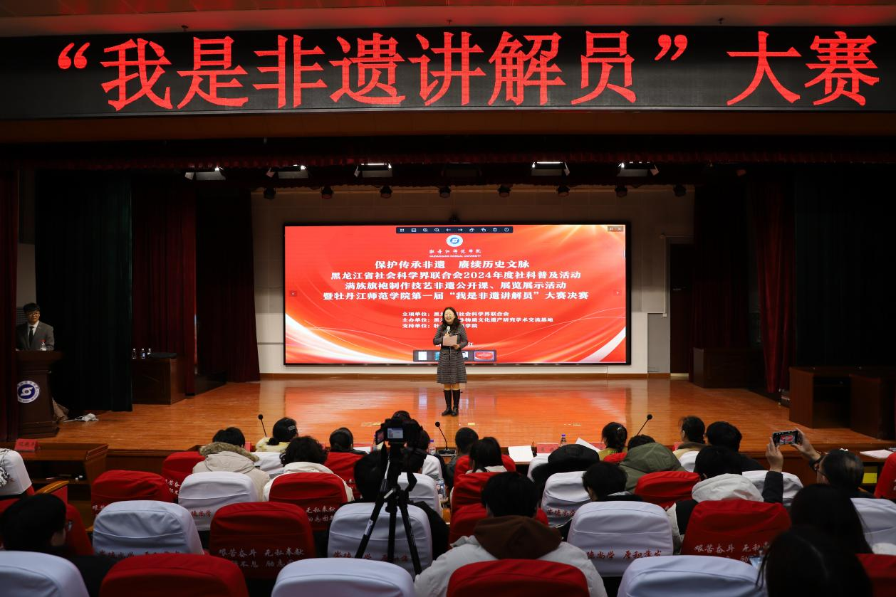 12月10日,黑龙江省社会科学界联合会立项支持的2024年度社科普及活动——“保护传承非遗,赓续历史文脉”:非遗公开课、非遗展览展示活动暨牡丹江师范学院第一届“我是非遗讲解员”大赛决赛在我校春秋讲坛举办,该活动由我校科研处、文学院支持、黑龙江省非物质文化遗产研究学术交流基地主办。此次活动旨在加强高校社科普及能力建设,增强大学生社科普及的责任意识与非遗保护传承能力。