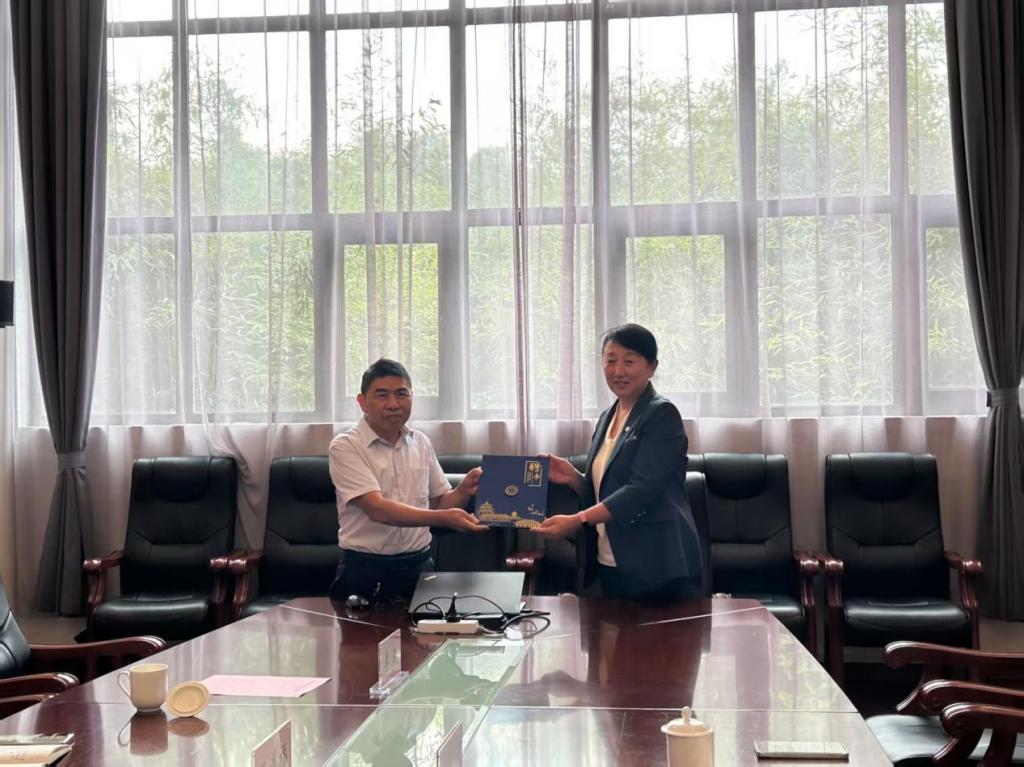 中国-上合司法培训基地办公室党总支副书记荣道福对牡丹江师范学院法学院一行表示欢迎,首先介绍了中国—上合司法培训基地的建设发展历程。法学院院长李学锋介绍了牡丹江师范学院以教育之力守边疆的67年办学历程,回顾了学校法学办学30年和独立建院9年来的建设发展情况。并对中国—上合组织司法培训基地对法学院涉外法治人才培养的教育教学改革给予的大力支持表示感谢,并向中国—上合组织司法培训基地办公室副主任张少英颁发了聘书。