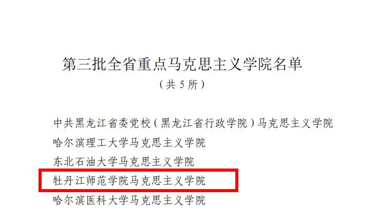 近日,中共黑龙江省委宣传部、中共黑龙江省委教育工委、黑龙江省教育厅联合发布《关于印发第三批全省重点马克思主义学院名单的通知》,我校马克思主义学院入选。