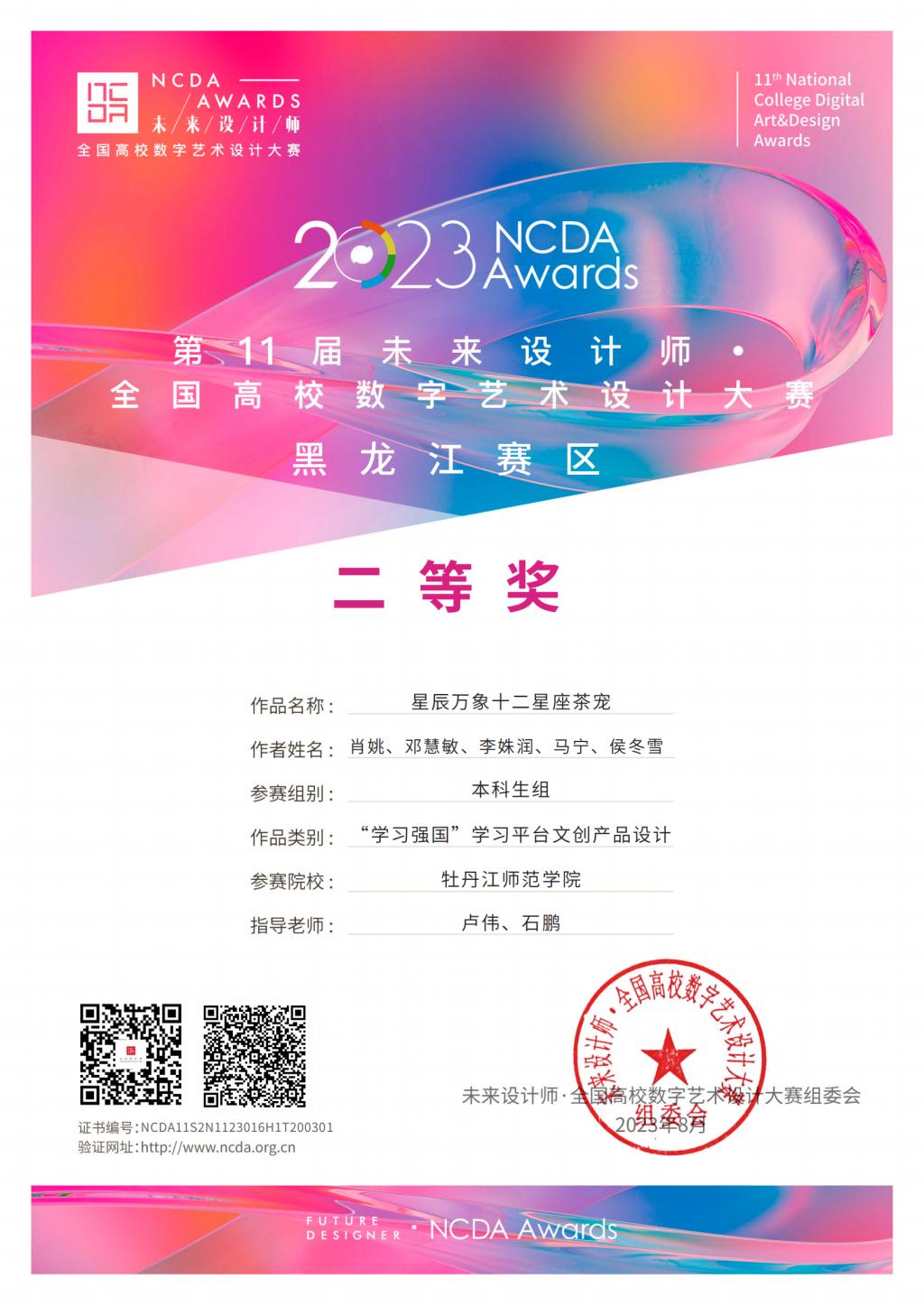 据悉,未来设计师·全国高校数字艺术设计大赛(NCDA)是一项由工信部人才交流中心主办、教育部中国高等教育学会认定的国家级创新创业竞赛。该比赛是面向全国高校的数字艺术设计比赛,旨在提高高校学生在数字艺术领域的创新能力、设计水平和实践经验。