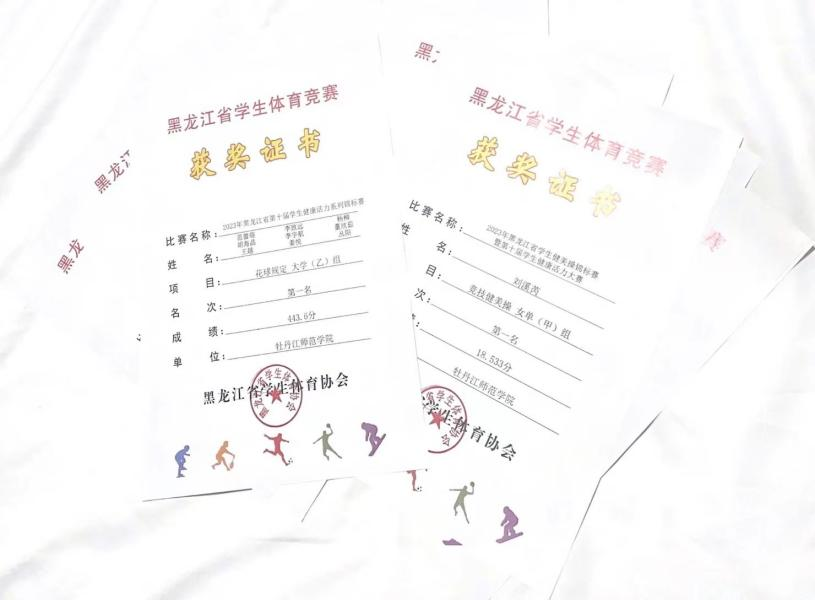 6月18日,2023年黑龙江省学生体操、 健美操、啦啦操、艺术体操、街舞、体育舞蹈、瑜伽锦标赛暨第十届学生健康活力大赛在哈尔滨师范大学正式开赛。我校代表队在领队朱春旺,教练员陈珊、刘阳、王丹的带领下,荣获竞技健美操女单(甲组)第一、花球啦啦操规定(乙组)第一的优异成绩。