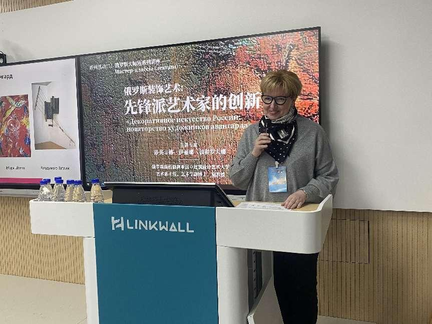 莎芙辛娜·伊丽娜·彼得罗夫娜教授主讲《俄罗斯风景画》《俄罗斯装饰艺术:先锋派艺术家的创新》,她解读了西方和俄罗斯的艺术史,回顾了俄罗斯风景画的整个发展历程,围绕前卫艺术家的创新性探索展开讨论,阐述俄罗斯先锋派艺术家新艺术理念和创作方法的历史背景,列举先锋派艺术家代表作品并逐一分析其深刻涵义。