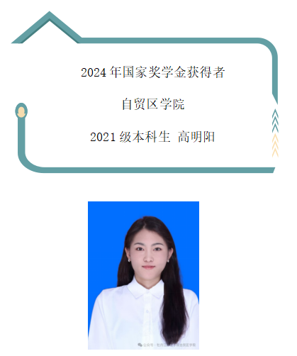 少年不惧岁月长,彼方尚有荣光在。在学习的漫漫长路上,我始终怀揣着对知识的炽热追求,获得国家奖学金,对我来说既是荣誉,也是责任。这份荣誉是对我过去努力的肯定,更是对我未来的激励。感谢学校营造了优良的学习环境;感谢老师们的悉心教导;感谢家人、朋友的陪伴和鼓励。在未来我会珍惜这份荣誉,继续为实现自己的人生目标而努力拼搏,为我国教育事业的发展贡献属于自己的一份力量。