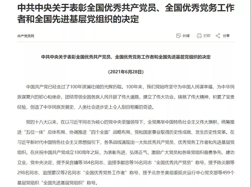 作为庆祝中国共产党成立100周年重大活动之一,全国“两优一先”表彰大会28日下午在人民大会堂召开。我省9名优秀共产党员、9名优秀党务工作者和15个先进基层党组织代表,在会上光荣接受表彰。我校校友2013届应用英语学院毕业生文竹,现为漠河市北极镇党委副书记、镇长,北极流动党员驿站党支部书记、站长,荣获全国优秀党务工作者称号。